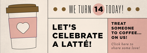 Take a minute today to celebrate by taking a friend, co-worker, neighbor, or family member out for coffee, on us! Just use the barcode below at any Starbucks store.